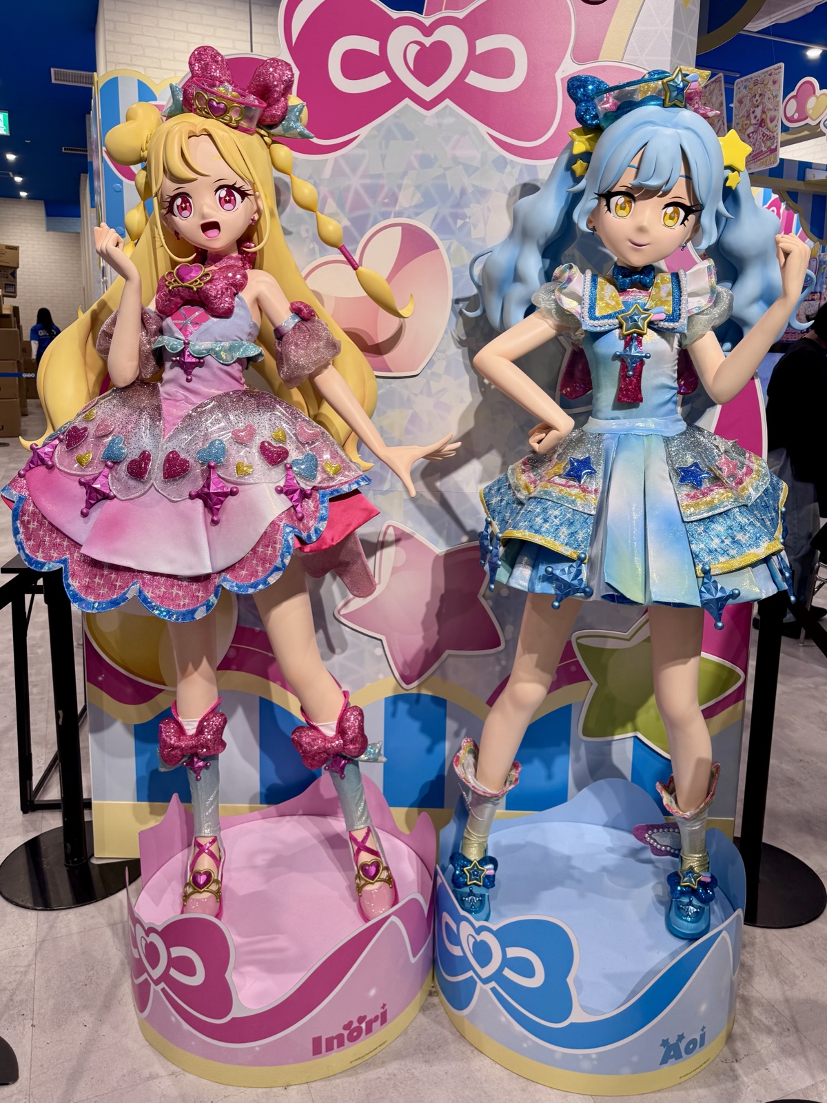 それでもアニメ要素もしっかりあって、等身大・ミニキャラのスタンディがお出迎えしてくれました。いのりとあおいだけでなく、アニメではまだ本格登場していないぐみ・おりびあ・ナナ・エマも含めたメインキャラ6人が揃って並んでおり、これからの作品展開がより楽しみになります。