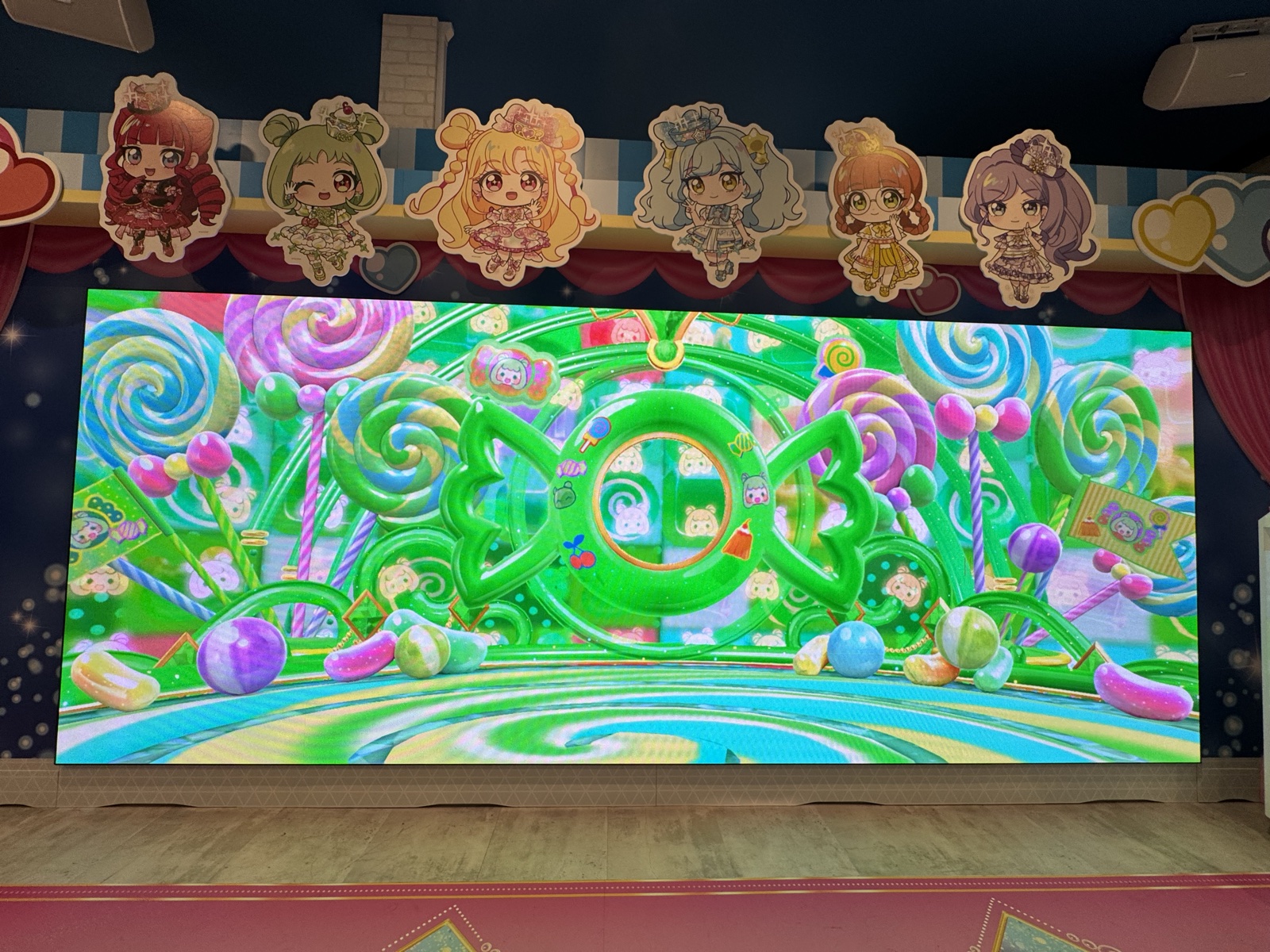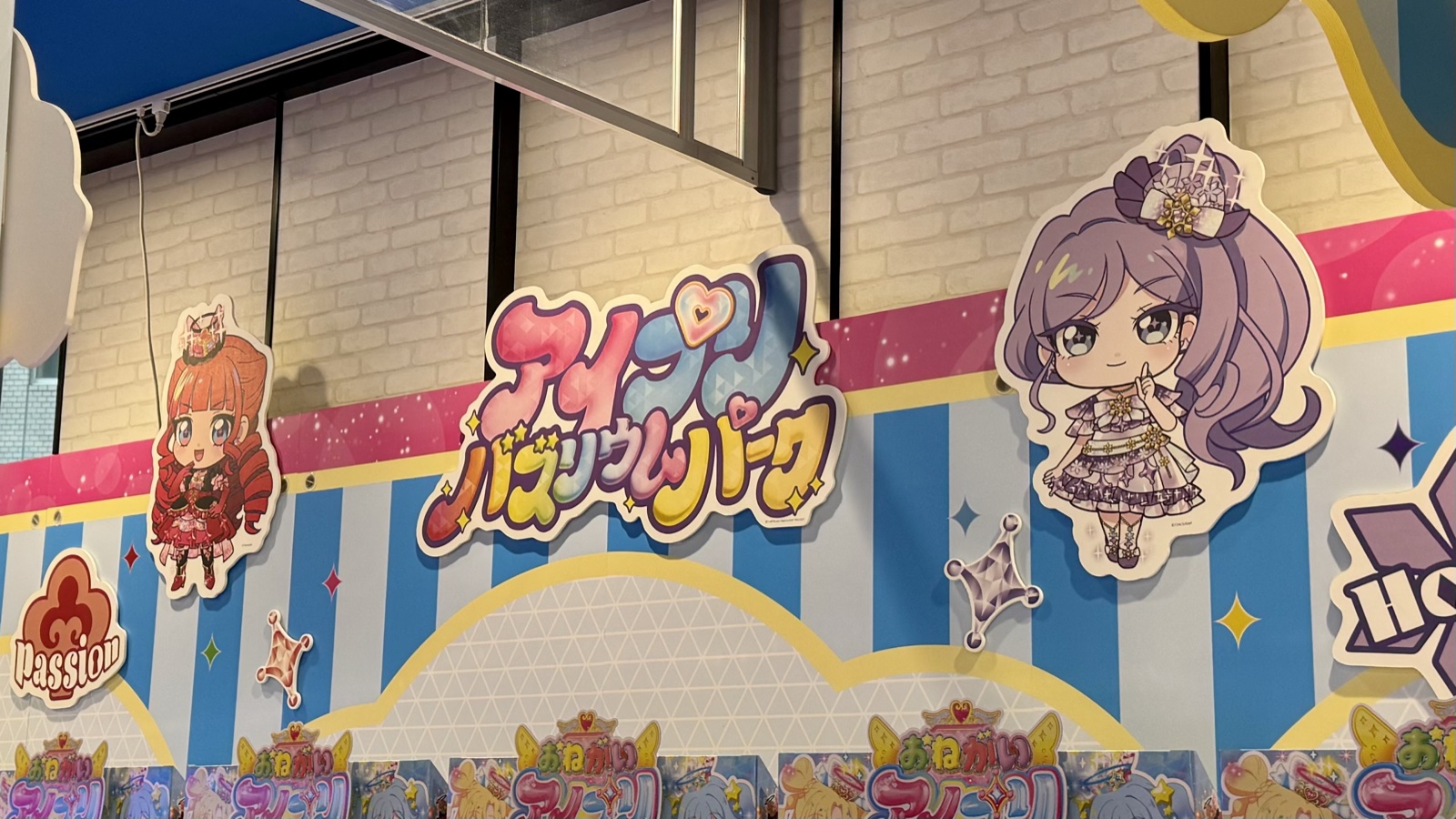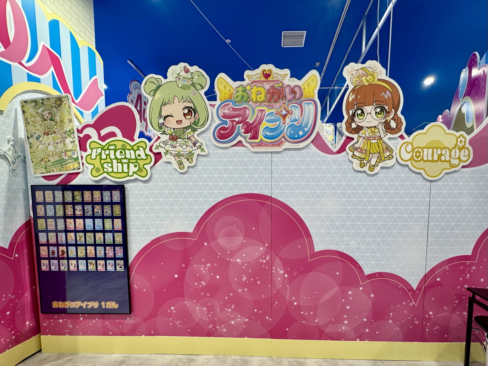 エリア全体が『おねがいアイプリ』のビジュアルで統一されており、遊ぶだけでなく"写真を撮る場所"としても完成度が高いのも特徴。キャラクターパネルや装飾が随所に配置されていて、プレイの合間に歩いて回るだけでも楽しめます。